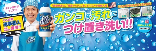 数々のテレビ番組で家事芸人として活躍中の松橋周太呂さん。誰でも簡単にできるスゴ技テクニックを披露しているほか、最近では『家事えもん』の愛称で子どもから大人まで幅広い層から支持を受けています。当社の酸素系マルチクリーナー「オキシクリーン」の商品特長である「ガンコな汚れも、かんたん漬けるだけ!」を、共感を持って伝えてもらえると考え、イメージキャラクターとして起用いたしました。プライベートでも「オキシクリーン」を愛用されている松橋さんのお掃除術は必見です。