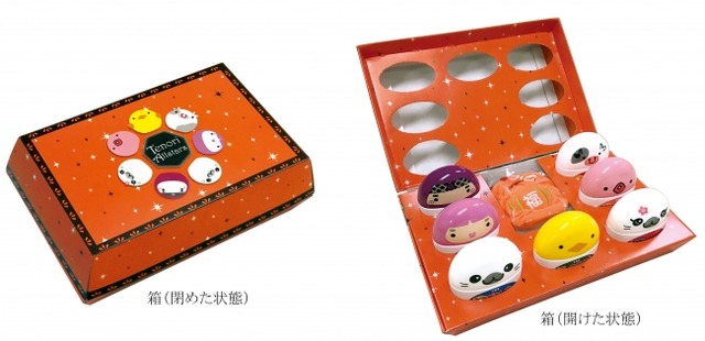 手のりシリーズ7種類と、着せ替えの出来る限定着ぐるみストラップ(サンタ・だるま)が付いた、かわいい箱入りで、プレゼントに最適の商品です。