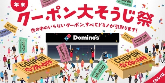 株式会社ドミノ・ピザ ジャパン(代表取締役社長:スコット・オルカー/本社:東京都千代田区、以下ドミノ・ピザ)が展開する、日本で最初のデリバリーピザチェーンドミノ・ピザは、年末の大そうじシーズンに合わせて、2016年12月5日(月)~12月22日(木)の期間限定で、世の中のあらゆるクーポンがドミノのピザ全品28%OFFクーポンとして利用できる「ドミノ・ピザ 年末クーポン大そうじ祭」を実施いたします。