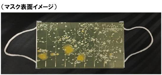 そのマスクも、実はつけているだけで安心とは限りません。エーザイとジェクス株式会社の調査によると、一日使用したマスクの表面には、空気中の菌が付着。「マスク付着菌」になってしまうことがわかっています。