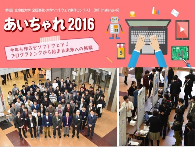 立命館大学 情報理工学部では、2011年度に「ICT Challenge +R 2011 -第1回立命館・全国高校生ソフトウェア創作コンテスト-」を開催し、以後毎年開催しています。情報科学に興味関心を持つ高校生を広く発掘し、チャレンジの場を創造するとともに、高等学校の授業や課外活動等において取り組むなど、高大連携の取り組みの一つとしてご活用いただいております。