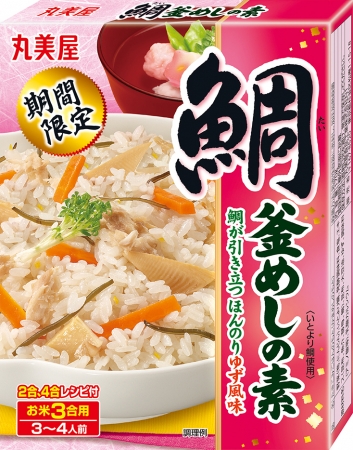 丸美屋食品工業株式会社(本社:東京都杉並区、社長:阿部豊太郎)では、「期間限定 筍釜めしの素」と「期間限定 鯛釜めしの素」「期間限定 はまぐり釜めしの素」を、2017年1月12日(木)から9月30日(土)までの期間限定で販売いたします。