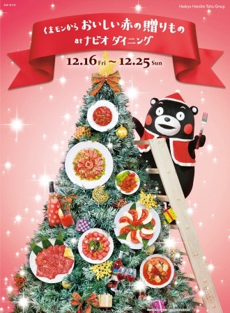 阪急阪神ビルマネジメント株式会社(大阪市北区)は、熊本県の後援を受け、2016年12月16日(金)~12月25日(日)に、HEP NAVIO(ヘップ ナビオ)内の飲食フロア、「ナビオ ダイニング」で熊本県食材を使用したグルメタイアップ企画[くまモンから おいしい赤の贈りもの at ナビオ ダイニング]を開催いたします。