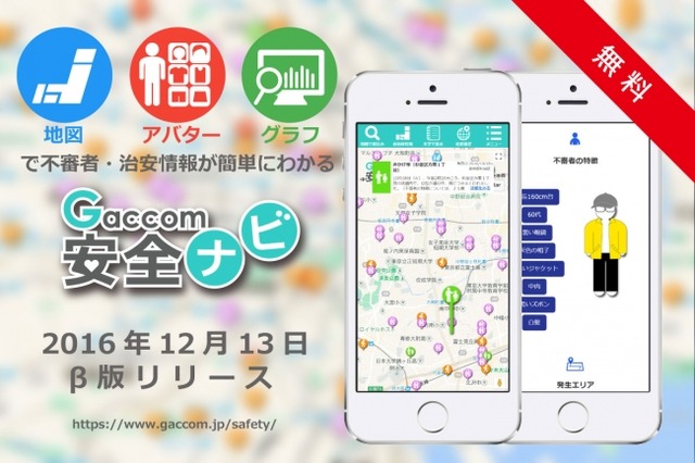 ■「ガッコム安全ナビ」特長とサービス内容 地図やアバターで治安情報をわかりやすく