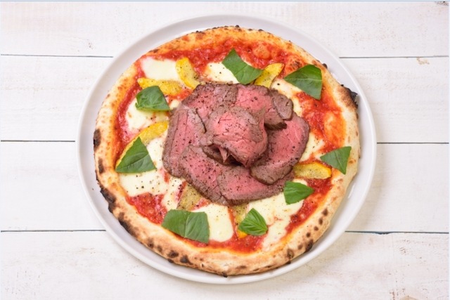 新メニューとして登場するピザの種類は全部で6種類。Cafe Mugiwaraでは、肉汁たっぷりの柔らかいローストビーフが口の中で広がる『ルフィが大好きな肉肉ピザ』とさくらエビの塩気がアクセントの『チョッパーの冬に咲く、奇跡の桜ピザ』のキャラクターをモチーフにしたピザ2種類をご用意!