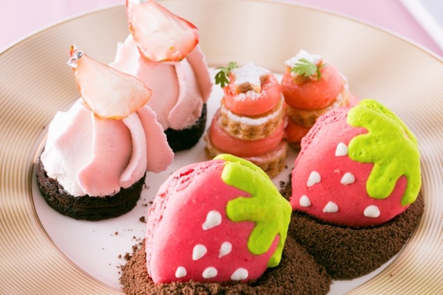 いちごの形をしたマカロンやいちごのモンブラン、いちごのミルフィーユなどを優雅な空間でご堪能いただけます。