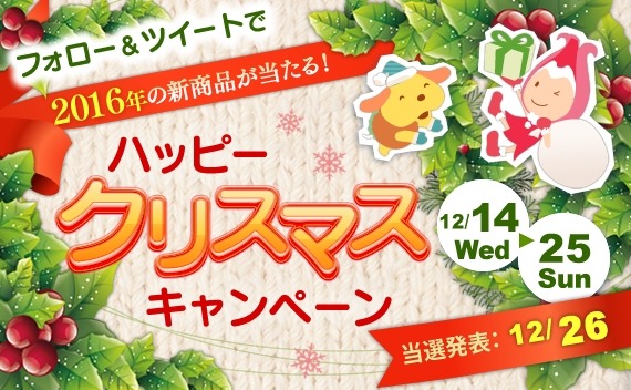 当選発表日:2016年12月26日(月)※当選者の方にはTwitterのダイレクトメッセージでご連絡します。
