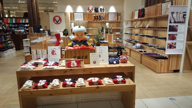「福助」エキュート大宮店“福助の歴史を体感いただき、記憶に残る空間を作る”をコンセプトに、商品に加えてその空間も楽しめる、『福助』のフラッグシップショップ。130余年の長い歴史で培ってきた技術を最大限に駆使した、本物志向の大人に向けたブランド『福助』を中心に展開。