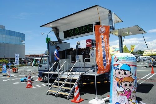 当日は、交通ルールをクイズで学ぶ「子ども安全免許証の発行」、シートベルト効果体験車を使用した「時速5kmの衝撃体験」、大仁警察署によるパトカーの展示、伊豆市と静岡県交通安全協会大仁地区支部等による交通安全啓発コーナーなど、親子で楽しく交通安全を学ぶ事を目的として開催します。