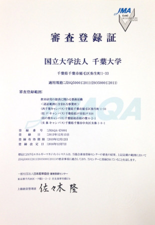 千葉大学は2004年度に環境マネジメントのISO14001を、2013年度にエネルギーマネジメントのISO50001の認証を取得。環境に配慮し、さらに効率的なエネルギー使用をする組織を運営する仕組みを運用しています。