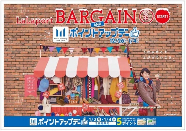 ららぽーと甲子園・和泉・EXPOCITYでは、2016年12月26日(月)から2017年1月4日(水)までの10日間、「全館ポイントアップデー」も同時開催します。バーゲン品でもポイントがたまる嬉しい期間です!
