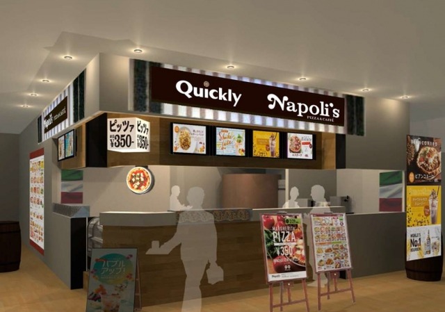 「Napoli’s PIZZA&CAFFÉ」は、日本初の窯焼きピッツァ&カフェ。一切妥協せず選び抜いたイタリア食材を使った直径25cmの本格窯焼きマルゲリータを1枚350円でご提供しています。その低価格を実現するために1枚のピッツァが約60秒で焼き上がり、同時に3枚を焼くことができる独自開発のピッツァ窯「ENDOME」と、生地のノシ作業が約3秒でできる「P-SLIDE」を導入することにより、職人レスでピッツァつくりのノシ作業、トッピング、焼き上げまでを約90秒という短時間で可能にすることで、低価格を実現しました。