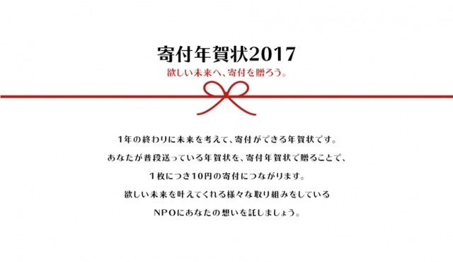 その取り組みの一環として、本年より、スマホで写真年賀状2017におきまして、寄付年賀状2017の取り組みを開始いたします。(寄付年賀状2017は、寄付月間公式認定企画となります。)