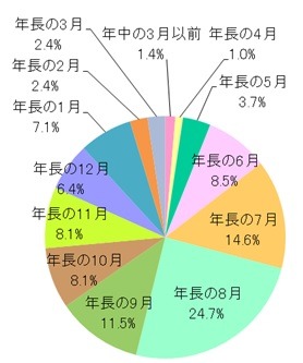 理想のランドセルを確実に購入することに情熱を注ぐ、ママたちによる“ラン活”なる言葉が生まれた2016年。ランドセル購入事情は以下のような結果に。■購入(予約)のピークは年長の8月(24.7%)