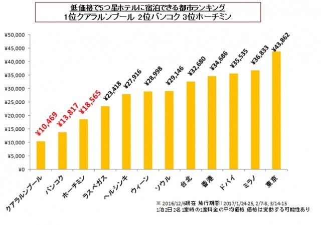 世界最大級の総合旅行サイト・エクスペディアの日本語サイト、エクスペディア・ジャパン(www.expedia.co.jp)は、年末年始の旅行シーズンに向けて、世界12都市の5つ星ホテルの価格を比較した「5つ星ホテル 都市別価格ランキング」を発表します。