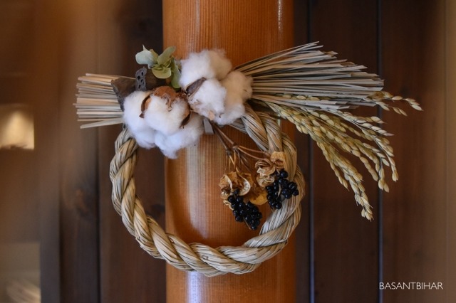 そこでBASANTBIHARでは、稲のしめ縄に生花やドライフラワーをあしらったしめ縄リースをご提案しております。お正月飾りをはずすのは、1月7日頃というのが一般的ですが、地域によっては15日というところもあるそうです。長ければ1ヶ月間は飾れるコスパも万能なしめ縄リース。