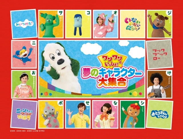 「ワンワンといっしょ!夢のキャラクター大集合」は、Eテレのキャラクターたちが大集合するスペシャルステージ!「いないいないばあっ!」でおなじみのワンワン・ジャンジャンをはじめ、「おとうさんといっしょ」のシュッシュ・ポッポ・なお・せいや、「みいつけた!」のコッシー・サボさん・オフロスキー、などおなじみの面々が登場。さらに、「ニャンちゅうワールド放送局」から、ニャンちゅう・おねんどお姉さん。さらに、「フックブックロー」けっさくくんも駆けつけてくれます。