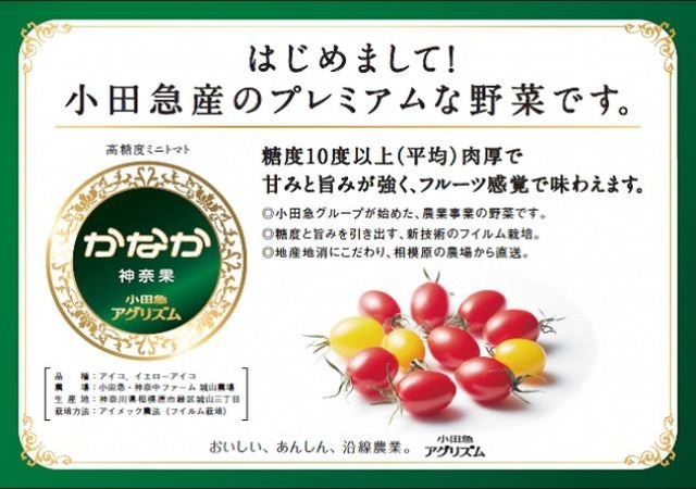今般、「かなか」の販売開始にあわせ小田急電鉄と神奈川中央交通は、「おいしい、あんしん、沿線農業。『小田急アグリズム』」として地産地消にこだわったアグリビジネスに本格参入いたします。小田急グループでは、社会的課題である休耕地問題の解消や就労機会の創出などの地域の活性化を図るとともに、沿線で育てた農産物を、グループの店舗を通じて、鮮度の良い状態で、沿線のお客さまにお届けいたします。