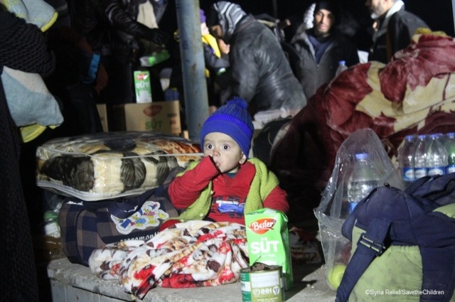 イドリブを拠点に活動するセーブ・ザ・チルドレンのパートナー団体のスタッフは、次のように証言します。「アレッポからのバスを降りると、子どもたちは目の前にある果物や暖かい食事に興奮して、バナナやリンゴを目がけて一目散に駆け出すので、混乱の中で両親とはぐれてしまうケースがありました。子どもたちだけでなく、大人の顔にも栄養不良状態がはっきりと表れていて、おそらく何ヶ月も果物など目することすらなかったのでしょう。また、子どもたちの顔や手足は、過去数週間の避難を待つ間に、暖をとるために家具などを燃やした炭で黒く汚れていました。」