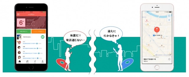 東日本大震災の教訓から、大地震の発生時や自然災害発生時、通信規制により、電話やメールの利用が困難な状況が発生することがわかりました。『ココダヨ』は、特許技術を応用し、家族の居場所と安否確認ができます。