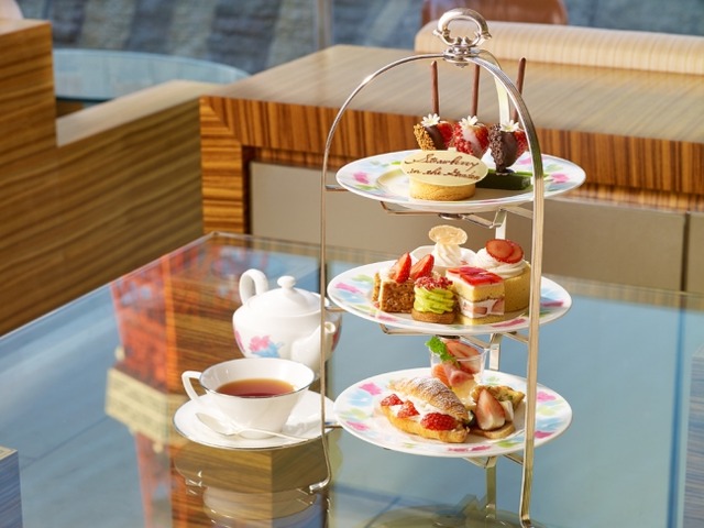 ケーキや焼き菓子のほか、小さなサラダなどにもいちごを使用し、3段あるティースタンドのすべてにいちごを 使用したメニューをご用意いたしました。ロビーラウンジは日本紅茶協会より「おいしい紅茶の店」として認定 されており、18種の紅茶やハーブティーのほか、いちごの香りがさわやかなストロベリーティーも追加料金で あわせてお楽しみいただけます。