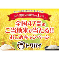 アプリ「トクバイ」で、全国47都道府県のお米が2017名に当たる!『こめきゃん』開催