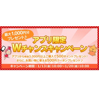 「アプリ限定Wチャンスキャンペーン」アプリからのお買い物でポイント&クーポンを期間限定でプレゼント≪1月20日(金) AM10:00まで≫