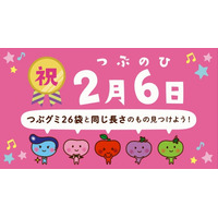 ~2月6日「つぶの日」記念動画を公開~ 「つぶグミ」26袋と同じ長さのものを見つけよう!かわいさたっぷり! 公式キャラクターが、あちこちに大奔走