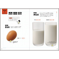 肉、魚、ごはん、パン、野菜、フルーツ……163食品すべて実寸大の100kcalで掲載!