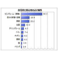居心地のよい場所のイメージは、「静か」「ひとりになれる」「明るい」が3~4割、「広々としている」「…