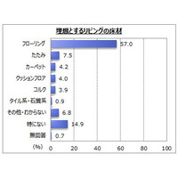 リビングの床材は「フローリング」が7割強、「たたみ」が1割強。床材選定時の重視点は「吸音性・遮音性…