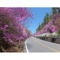 京都洛西の自然の中を走る観光有料道路「嵐山‐高雄パークウエイ」は、間もなく沿道に群生するミツバツツジ…