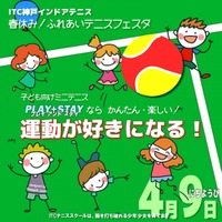 【ITC神戸インドアテニス 春の入学・進級お祝いイベント】ふれあいテニスフェスタ開催。テニス未経験、運動に自信がないお友達も大歓迎。安全ミニテニス「プレイ アンド ステイ」で今日から運動大好き!