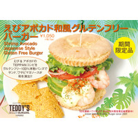 米粉100%グルテンフリーバーガーで、ヘルシーに美味しく!!プリッと食感とわさび風味が嬉しい「えびアボカド和風グルテンフリーバーガー」ハワイNO.1 バーガー・テディーズビガーバーガーより新登場!!