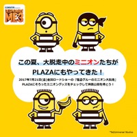 この夏、大脱走中のミニオンたちがPLAZAにもやってきた!写真をSNSに投稿して、ミニオングッズをもらおう!