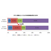 クルマの利用回数にガソリン価格は「影響しない」が約7割前回に続き、高いと感じるガソリン価格は「130円/L以上」が最多