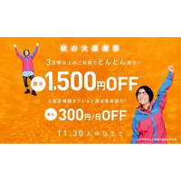 旅行するほど得する?!イモトのWiFi、「秋の大感謝祭」を開始!!