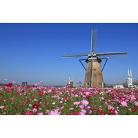 オランダ風車を背景に、色とりどりのコスモスが50万本以上咲き誇ります。日中はもちろん、印旛沼に沈みゆ…