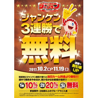 10月2日(月)よりジャンカラ全店でスタート!「ジャンケンで3連勝できれば、ルーム料金が最大で“無料”になるキャンペーン」を実施!