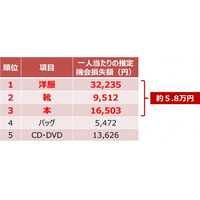 <大掃除と断捨離に関する意識調査>昨年の大掃除で処分されたモノ上位3つの【推定機会損失額】は一人当たり5.8万円(※1)