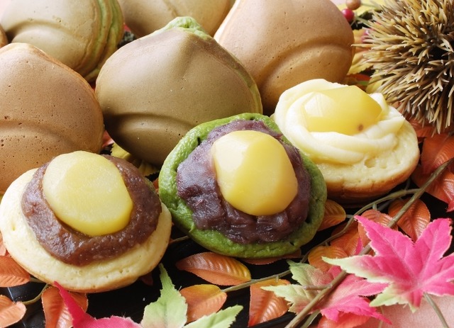 栗まんじゅう(丹波栗あん、抹茶入り丹波大納言、カスタードクリーム)