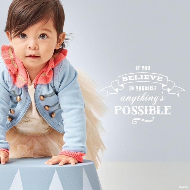 2017年1月、babyGapはウォルト・ディズニー・カンパニーと一緒に、子どもから大人まで世界中の人々に愛されるディズニーキャラクターたちからインスピレーションを得た、限定カプセルコレクション第二弾となる “Disney Dumbo Collection by babyGap” を、全国のbabyGapストアとオンラインhttp://www.gap.co.jp/で発売します。