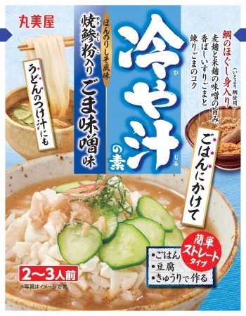 丸美屋食品工業株式会社(本社:東京都杉並区、社長:阿部豊太郎)では、「期間限定 冷や汁の素 <焼鯵粉入りごま味噌味>」と「期間限定 冷や汁の素<鶏すだち味>」を、2017年2月9日(木)から9月30日(土)までの期間限定で販売いたします。メイン具材入りのストレートタイプなので、冷蔵庫で冷やして常備食材を加え、ごはんにかけるだけで簡単に冷や汁が作れます。郷土食をアレンジした期間限定ごはんメニューで市場を盛り上げます。
