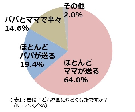 「その他」のフリー回答では、祖父母が登園を担当している、というケースも散見されました。共働きのご家族では、信頼できる祖父母に任せることでふたりの負担を減らすことができ、祖父母世代はかわいい孫と毎朝の決まったひとときとして楽しめるなど、どちらにとっても嬉しい分担となっているようです。