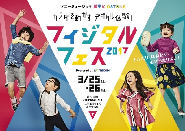 株式会社ソニー・ミュージックエンタテインメント(本社:東京都千代田区、代表取締役:水野道訓)のキッズ専門ブランド「KIDSTONE(キッズトーン)」と、イッツ・コミュニケーションズ株式会社(本社:東京都世田谷区、代表取締役社長:高秀憲明)は、カラダを動かしながらデジタルに親しむ、子ども向け体験イベント「~カラダを動かす、デジタル体験!~フィジタルフェス2017」を、ファミリー層に人気のスポット、二子玉川ライズのiTSCOM STUDIO & HALL 二子玉川ライズにて、3月25日(土)26日(日)の2日間に亘って初開催いたします。