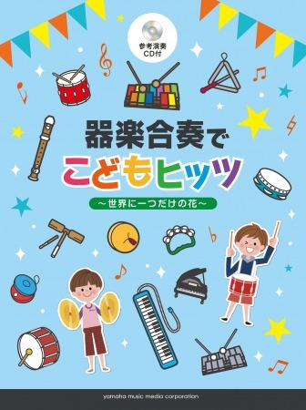 小学校の先生方にご好評頂いている『器楽合奏でこどもヒッツ』シリーズの第2弾は、「千本桜」、「みんながみんな英雄」といった話題曲から、ワンピース主題歌の「ウィーアー!」や関ジャニ∞の「無責任ヒーロー」といった楽しい楽曲のほか、学校行事でも使いやすい歌パート入りの「世界に一つだけの花」「旅立ちの日に」など収載。編成はリコーダー、鍵盤ハーモニカ、木琴、鉄琴、打楽器(カスタネット、トライアングル、タンバリン、シンバル、小太鼓、大太鼓等)、ピアノで、対象は小学校中学年からとなっています。参考演奏CDも付いているので、指導時にも安心。学校行事にぜひご活用ください。