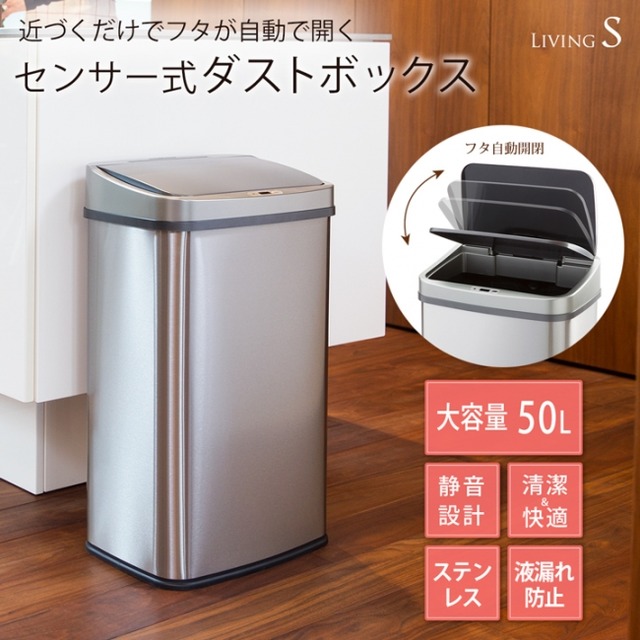 自動開閉のセンサー式ダストボックス、大容量の50リットル。