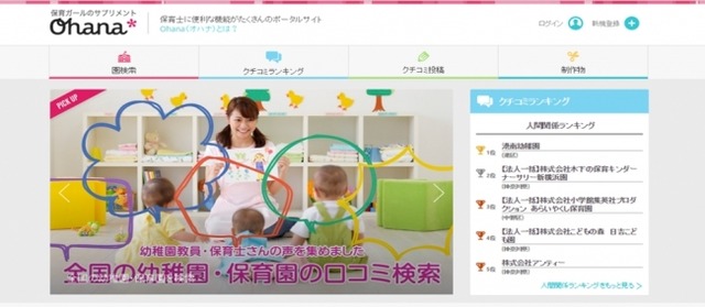 「Ohana」は、保育士はもちろん、保育士を目指す学生や、保育園を探す保護者の方々など、保育に関わる全ての方々のための情報ポータルサイトです。保育施設の住所・電話番号等の基本情報の検索、クチコミの閲覧・投稿や、制作物アイデアの共有など、保育現場からニーズの高い情報を集約しています。また、専任のコンサルタントに転職相談を行うことも可能です。