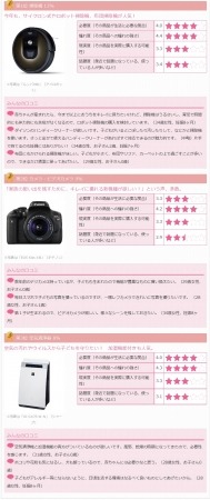 ☆の数は、選んだ商品ごとに、5つの評価項目をそれぞれ5段階で評価した平均値です(順位とは関係ありません)。