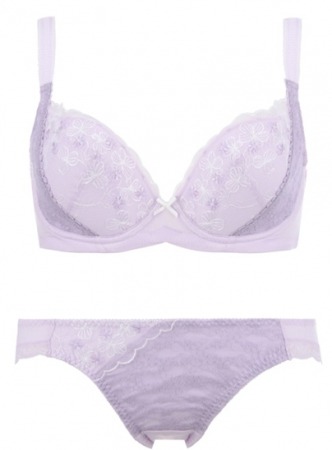 最新作は、野に咲く小花が愛らしい印象の刺しゅうレースで、女性らしい印象のミニマイザーに仕上げました。カップサイドからバストを包みこむように編みレースを配しており、濃淡をつけた編みレースのカラーがバスト全体を見た目にも小さく包みこんでくれます。